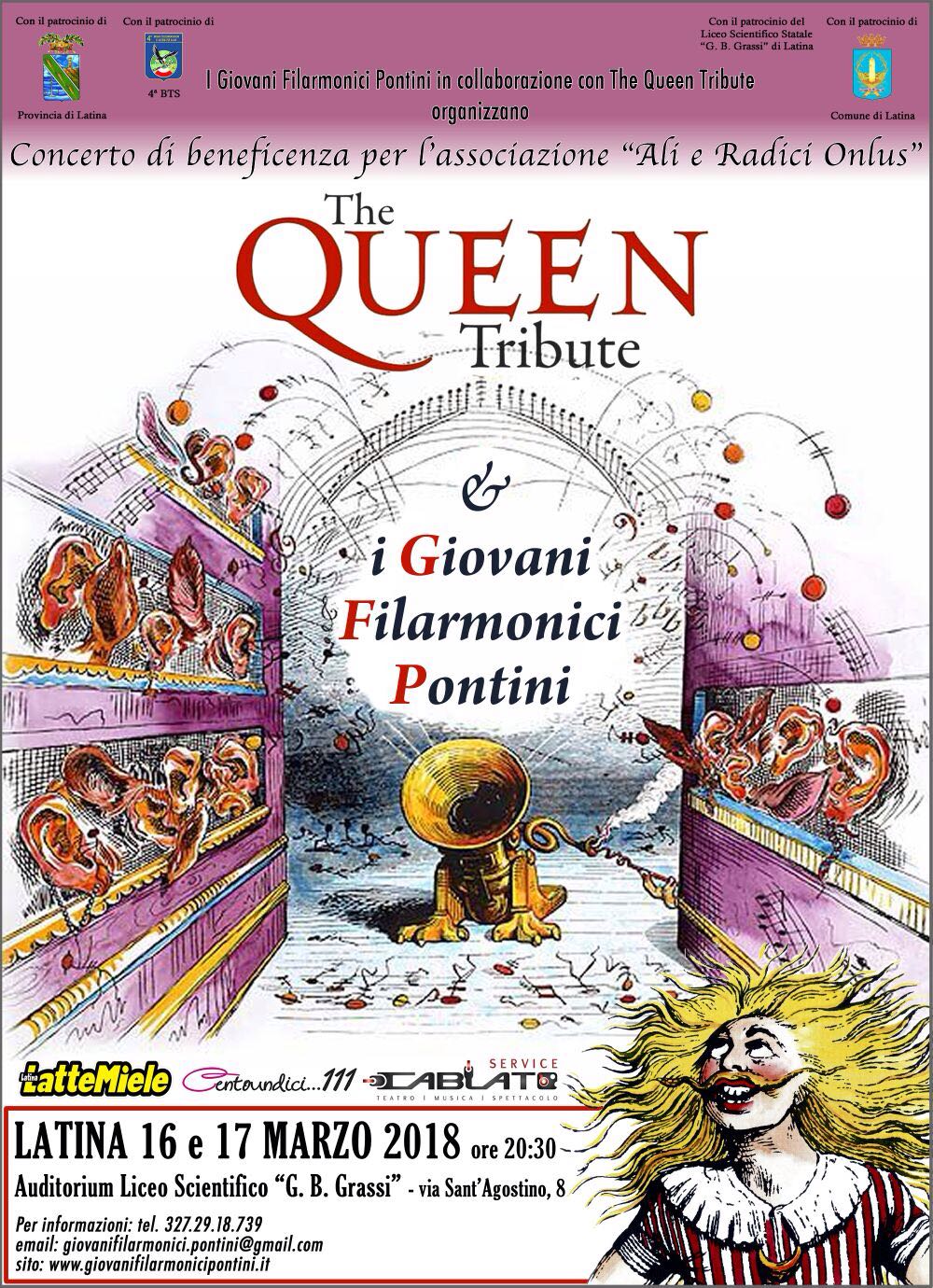 Si è svolto, il 16 e 17 marzo 2018 alle ore 20:30 presso l'aula magna del Liceo Scientifico "G.B. Grassi" di Latina, il concerto di beneficenza in favore della nostra Associazione "Ali e Radici Onlus", che ha visto sul palco i "The Queen Tribute Band" & "I Giovani Filarmonici Pontini". Queste due realtà musicali hanno saputo coinvolgere il pubblico...